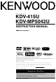Record the serial number, found on the back of the unit, in the spaces designated on the warranty card, and in the space provided below. Refer to the model and serial numbers whenever you call upon your Kenwood dealer for information or service on the product. Model KDV-415U/ KDV-MP5042U Serial number...