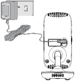 - Connect the small plug of the power adapter to the Baby Unit and the other end to a suitable mains power socket.