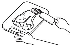 - Cut food into small strips or pieces sized to fit into the feed tube.