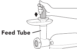 - Turn the Stand Mixer to Speed 4 and feed food into the feed tube using the food pusher.