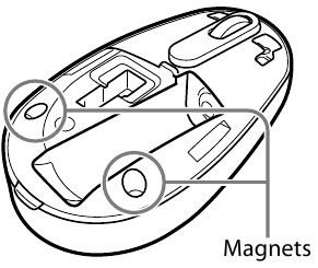 - The mouse contains magnets. Do not place magnetic recording media (magnetic stripe cards, credit cards, etc.) or recording devices (hard drives, etc.) near the mouse. Otherwise it may cause a malfunction.