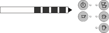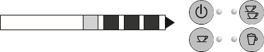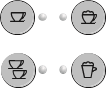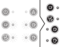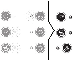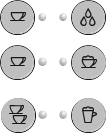 ![]() | The appliance is on: no accessory is connected to coupling A2. | The appliance is heating up to make coffee: when the 1 or 2 cup lights stop flashing, the appliance has reached the ideal temperature to deliver coffee. |