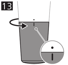 - To switch on the product, turn the bottom part of the handle until the 'on' indication (l) is aligned with the setting indicator (black dot) on the top part of the handle (Fig. 13).