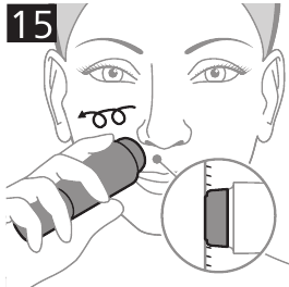- Place the hair removal head flat onto the skin and make circular movements (Fig. 15)