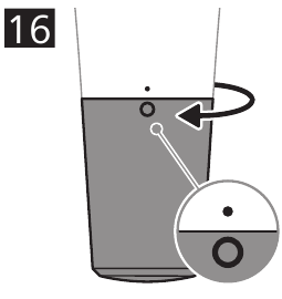 - To switch off the product, turn the bottom part of the handle until the 'off' indication (O) is aligned with the setting indicator (black dot) on the top part of the handle (Fig. 16).