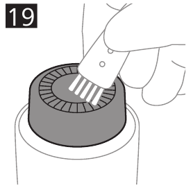 - To remove hairs from the outside of the hair removal head, first blow them off (Fig. 18) and then brush off remaining hairs with the cleaning brush (Fig. 19).