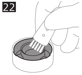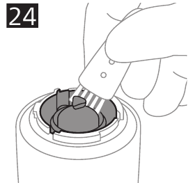 - To remove hairs from the hair chamber, first blow them out (Fig. 23) and then brush out remaining hairs with the cleaning brush (Fig. 24).