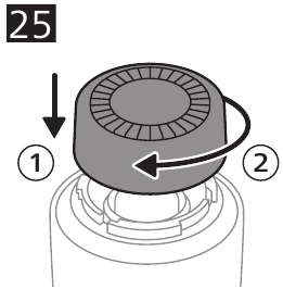 - Place the hair removal head back onto the handle and turn it clockwise to reattach it (Fig. 25).