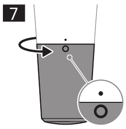 - Turn the battery compartment cover until the 'locked' indication (O) is aligned with the setting indicator (small dot) on the top part of the handle (Fig. 7).