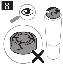 - Always check the hair removal head before use to make sure it is clean, in good condition and not damaged or worn (Fig. 8). A damaged hair removal head can cause skin irritation and reduced product performance.