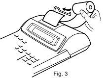 - Lift the attached metal paper holder up and insert the paper roll to the paper holder. (Fig. 3)