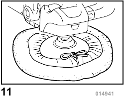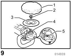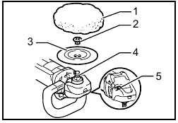 Hold the tool firmly. Turn the tool on and then apply the wool pad/bonnet to the workpiece.