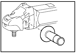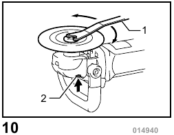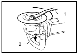 - Never actuate the shaft lock when the spindle is moving. The tool may be damaged. Press the shaft lock to prevent spindle rotation when installing or removing accessories.