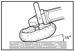In general, keep the wool pad/bonnet at an angle of about 15 degrees to the workpiece surface.