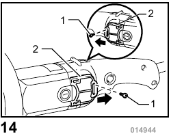 Remove and check the carbon brushes regularly. Replace when they wear down to the limit mark. Keep the carbon brushes clean and free to slip in the holders. Both carbon brushes should be replaced at the same time. Use only identical carbon brushes.