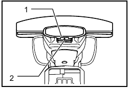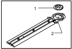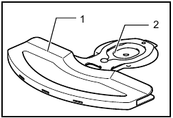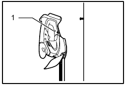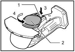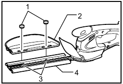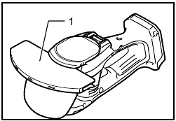 Turn the shear blades upside down and install it so that pin on the tool fit in the hole in the shear blades. Fit the bent part of the base plate of the shear blades to the groove in the tool housing. Then make sure that the base plate of the shear blades is set in place.