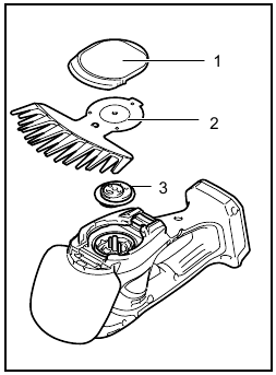 - Before installing or removing shear blades, always be sure that the tool is switched off and the battery cartridge is removed.