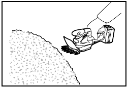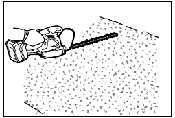 - Do not cut off dead trees or similar hard objects. Failure to do so may damage the tool.