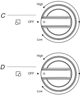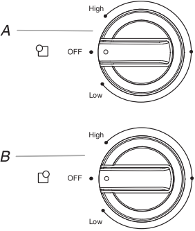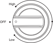 The control knobs can be set to anywhere between HIGH and LOW. Push in and turn to setting.