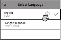 ![]() | To select or confirm: Tap the screen to select the value or menu item you require |