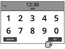 - Tap the relevant numbers to set the time and the AM/PM button on the bottom-left.