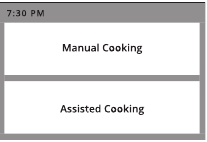 The display allows you to choose between Manual and Assisted Cooking. - Tap the main function you require to access the corresponding menu.