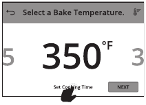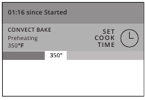 When an oven is in use, the display will show the clock, mode, oven temperature, kitchen timer, and oven timer, if set. If the oven timer is not set, you can set it from this screen.