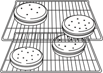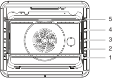 Insert the wire shelf horizontally by sliding it across the shelf guides in correspondence to the rack positions pictured below, making sure that the side with the raised edge is facing upwards. Other accessories, such as the drip tray and the baking tray, are inserted horizontally in the same way as the wire shelf.