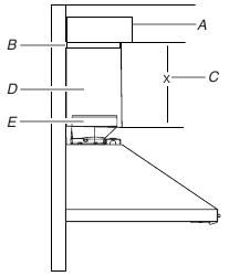 NOTE: The range hood chimneys are adjustable and designed to meet varying ceiling or soffit heights, depending on the distance "X" between the bottom of the range hood and the cooking surface. For higher ceilings, a Stainless Steel Chimney Extension Kit is available from your dealer or an authorized parts distributor. See "Assistance or Service" section to order. The chimney extension replaces the upper chimney shipped with the range hood.