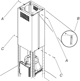 Because of the size and weight of this island hood, the chimney support must be securely attached to the ceiling.