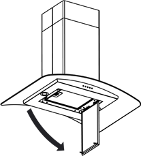 - Hood ventilator assembly with canopy glass, retainer brackets, rubber seals, and LED lights installed
