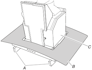 Minimum distance "C": 24" (61 cm) from electric cooking surface, 27" (68.6 cm) from gas cooking surface