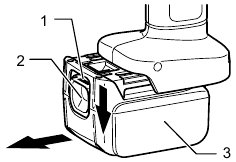 - Hold the tool and the battery cartridge firmly when installing or removing battery cartridge. Failure to hold the tool and the battery cartridge firmly may cause them to slip off your hands and result in damage to the tool and battery cartridge and a personal injury.