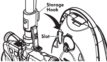 The wand has a "U" shaped storage hook that slides into the "U" shaped slot on the canister. The storage hook allows the wands and PowerMate® to be stored with the canister to conserve storage space. The canister must be stored on end for this feature to be used.