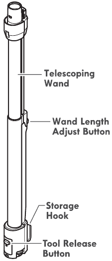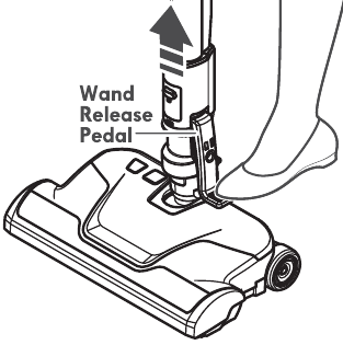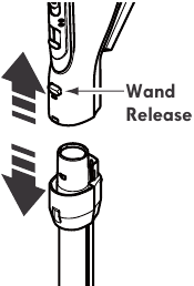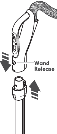 To remove: Press wand release button and pull up on handle.