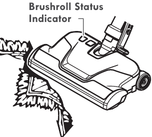 To correct problem: Turn off and unplug vacuum cleaner, remove obstruction, then turn on the vacuum cleaner again. The brushroll status indicator will be off.