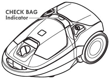 For best cleaning results, the dust bag should be changed often. The CHECK BAG indicator will come on when the bag needs to be changed or the airflow is blocked.