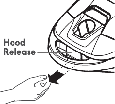 To remove: Do not open hood before removing hose. With hood closed, press hose latch tab and remove hose.