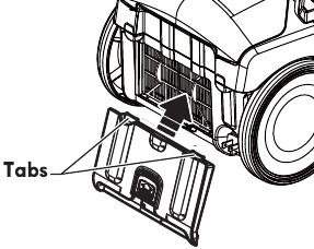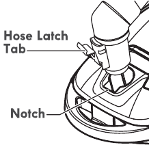 Push hose connector firmly into the canister body until the hose latch tab snaps into place. The vacuum cleaner will not operate until hose is fully connected.