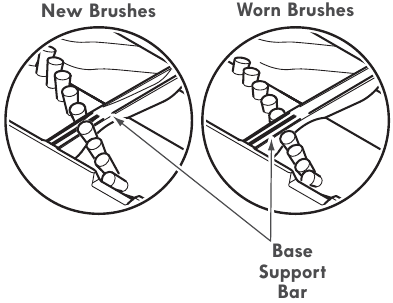 When brushes are worn to the level of the base support bars, replace the brushroll assembly.