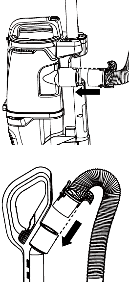 Always return the vacuum cleaner to the upright position before using the hose and attachments. Failure to do so may result in overheating of the brushroll motor and can cause the thermal protectors to trip.