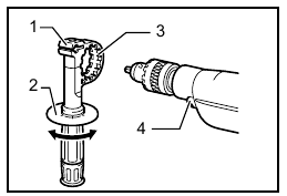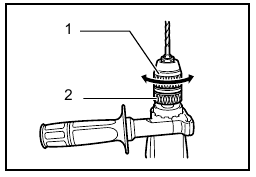 Hold the ring and turn the sleeve counterclockwise to open the chuck jaws. Place the bit in the chuck as far as it will go. Hold the ring firmly and turn the sleeve clockwise to tighten the chuck.