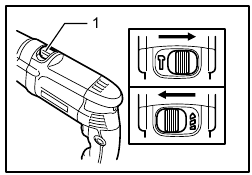 This tool has a reversing switch to change the direction of rotation. Move the reversing switch lever to the