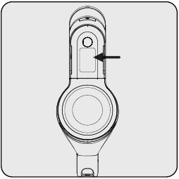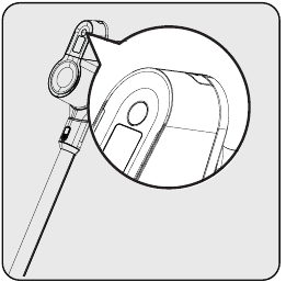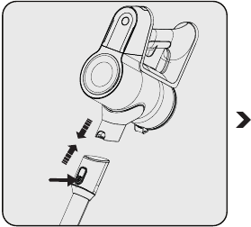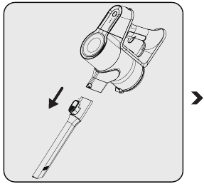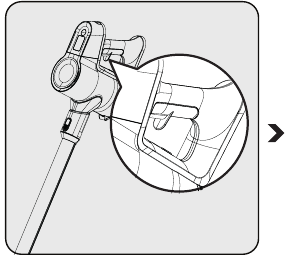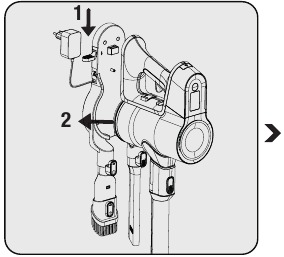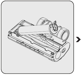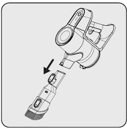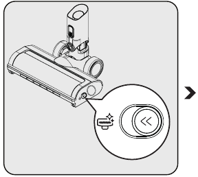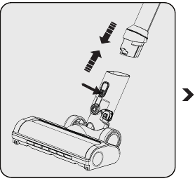 - Press the electric turbo brush release button on the electric turbo brush and push it in the direction of arrow towards the tube.