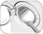 - If there is no power, loading door of the product will not open. >>>To open the loading door, open the pump filter cap and pull down the emergency handle positioned at the rear side of the said cap. See "Loading door lock"