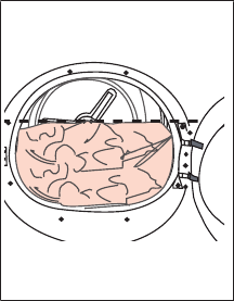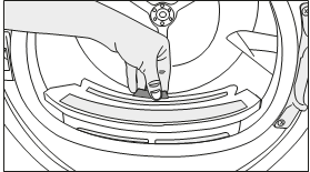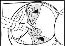 | Fibres might have gathered on the inner surfaces of the loading door and on the surfaces of the loading door gasket. >>> Clean the inner surfaces of the loading door and the loading door gasket surfaces. |