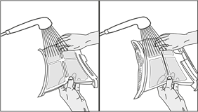 - Clean both filters under water running in reverse direction of fibre accumulation or with a soft brush. Dry the filter before placing it back.