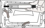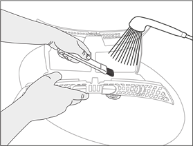 | | The cleaning brush is inside the documentation bag. Get your brush from the documentation bag and insert it to its place on the air deflector to store it. |