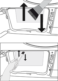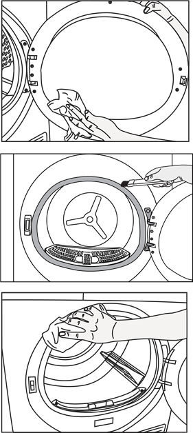 - Clean the inner surface of the loading door and the gasket with a soft damp cloth or the brush on the air deflector.