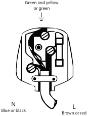 - Connect the blue (neutral) wire to the terminal in the plug marked 'N' or coloured black.